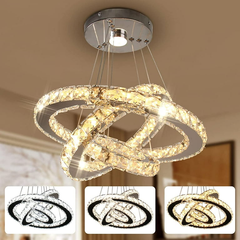 Frixchur Dimmable Crystal Chandeliers Led Ceiling Light Fixture 3 Rings Adjustable Stainless Steel Pendant Light Chandelier Multi Color Walmart Com